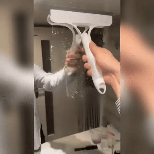 Meet your new favorite cleaning companion, the 3-in-1 Glass Cleaning Squeegee with Spray, Squeegee, and Microfiber Scrubber.